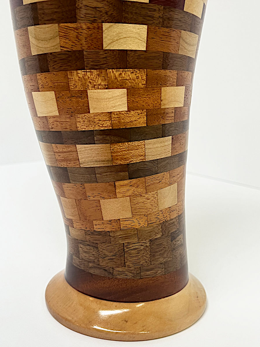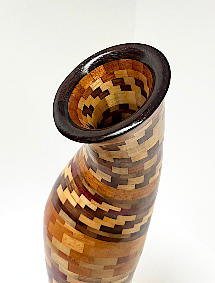 Original wooden sculpture by Davoud Khosravi using a combination of Maple, Walnut, Mahogany, Purpleheart and Wenge.