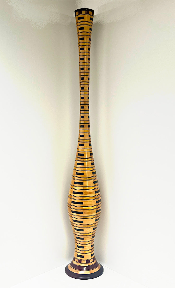 Original wooden sculpture by Davoud Khosravi using a combination of Maple, Wenge, Pau Amarello, Purple Heart, Burnt Lines.