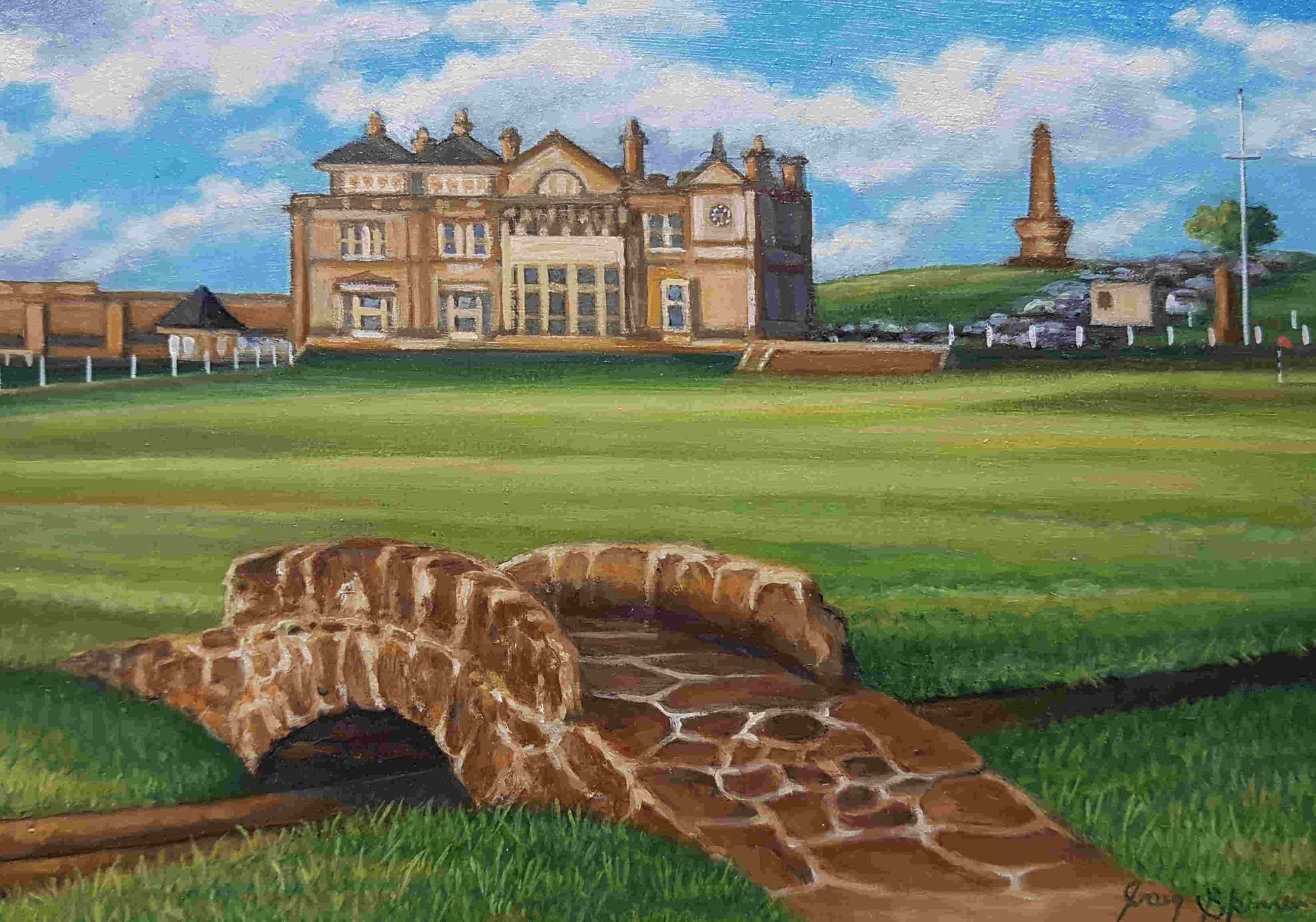 Original oil painting on board by Craig Skinner - soft realist artist, landscape realism, golf course subjects, master of light and texture.